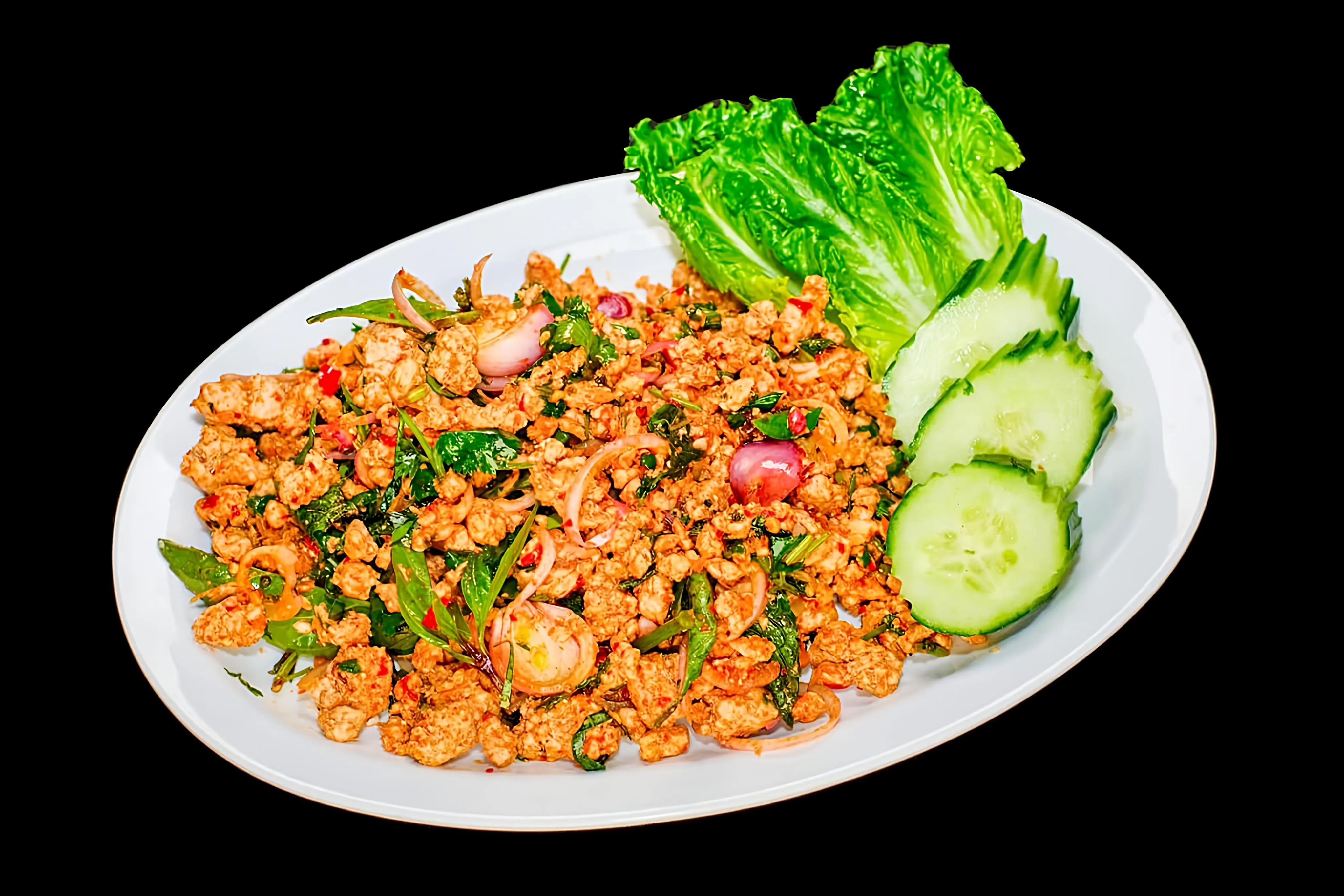 Roasted Rice Powder, Lemongrass, Cilantro, Mint, Basil And Lime. Served With A Side Of Cucumber& Lettuce.
